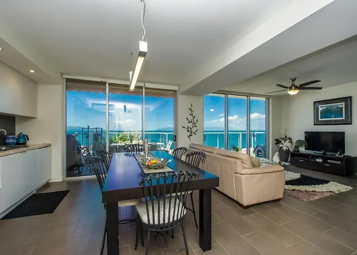 Appartement Panoramic Ocean Views 2 Bed/2 Bath Unit, Nelly Bay spacieux est situé à 4 km d'Horseshoe Bay Lagoon Conservation Park et dispose d'une piscine. Le domicile de 145 m² avec un jacuzzi se trouve non loin de Nelly Bay to Arcadia Trail.